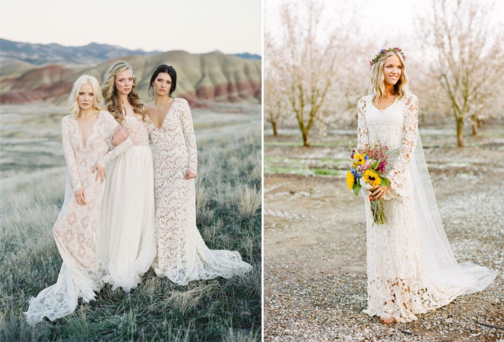 Ανάλαφρη, Ανέμελη, Αιθέρια… Αν αισθάνεστε παιδί των λουλουδιών και νιώθετε ελευθερία στην ψυχή και στο πνεύμα σας, ένα τέτοιο νυφικό, σε αυτή την απλή γραμμή είναι το ιδανικό για το στυλ σας. Ντεκολτέ βαθύ με τρόπο διακριτικό, με ανάλαφρα μανίκια και χυτές φούστες. Υφάσματα αιθέρια, μεταξωτή μουσελίνα, βαμβακερό τούλι, λεπτεπίλεπτες δαντέλες ή δαντέλες με έντονα λουλούδια, που χαϊδεύουν και αγκαλιάζουν το κορμί. Αν η τελετή είναι στην εξοχή ή στην παραλία, μπορείτε να πάτε ξυπόλυτη ή με ένα ωραίο ζευγάρι σανδάλια. Για νυφικό χτένισμα, μπορείτε να επιλέξετε στεφάνι από λουλούδια, κορδέλα ή δαντέλα στο μέτωπο ή μπλεγμένα σε κοτσίδες στα μαλλιά σας. Μπορείτε να ολοκληρώσετε την εικόνα σας με ένα ανάλαφρο πέπλο που θα το τοποθετήσετε χαμηλά, και για πιο έντονη εικόνα μπορείτε να βάλετε ένα εντυπωσιακό βραχιόλι στο μπράτσο σας ή να φτιάξετε ένα extreme tattoo από henna. Για μια τελετή στην εκκλησία, στολίστε τη νυφική σας εικόνα με μακριά και εντυπωσιακά σκουλαρίκια, αξιοπρόσεκτα βραχιόλια και επιδεικτικά δαχτυλίδια… χωρίς βέβαια να «σκεπάζουν» την προσωπικότητά σας, χωρίς να είσαστε «εκτός» του δικού σας χαρακτήρα.